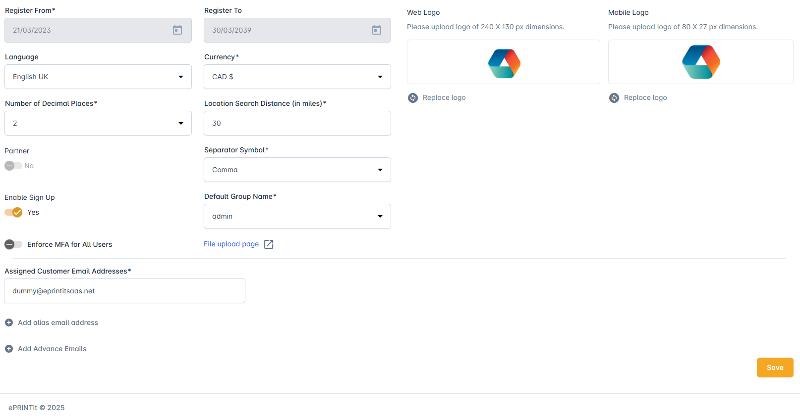The Customer Details screen is an important feature within the ePRINTit SaaS and allows the user with specific privileges and rights to view and/or manage all the relevant information about the customer.