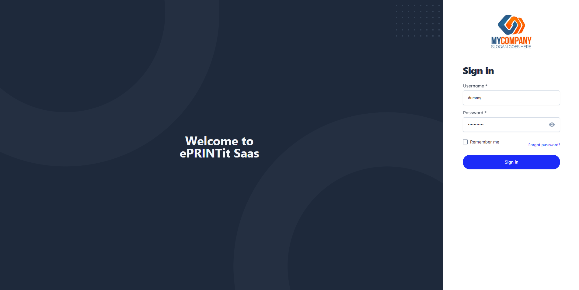 After the Customer Onboarding Process, the admin ePRINTit SaaS account is created and the link to the customer portal and credentials to access it is sent by email to the email address informed during the onboarding process. The instructions below share the information regarding the functionalities available in the Customer Portal.