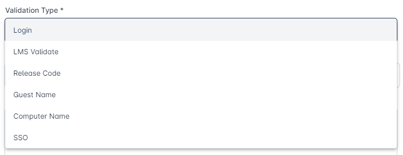 Choose the validation type from the dropdown. There are six available options for validation, listed as follows: