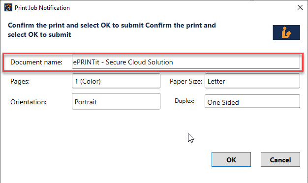 This field allows users to modifying or changing the name of a document when printing files in File to Print application. If the toggle bar is enabled, the document name will be editable at the time of printing a job.