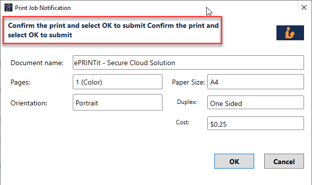 A confirmation message description text is a communication sent to acknowledge or verify a specific action, transaction, or event. It serves to inform the recipient that their request, order, or input has been received and processed successfully. Confirmation messages are used to provide customers or users with reassurance and essential details. The confirmation message is displayed in File to Print application in Print Notification screen.