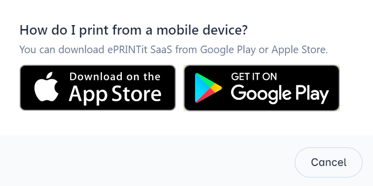 This field displays the information about how to download the mobile version of ePRINTit SaaS for Android and iOS. For more information about how to download the mobile version, click here.