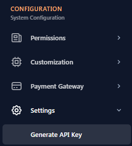 To access the Generate API Key screen, the user simply needs to login to the ePRINTit SaaS and on the menu bar navigate to the Configuration/Settings/Generate API Key area. This feature is managed by permissions and the user must be associated to a group that allows the user to access this option. To get more information about groups and how to associate it to a role type that has this permission, click here.