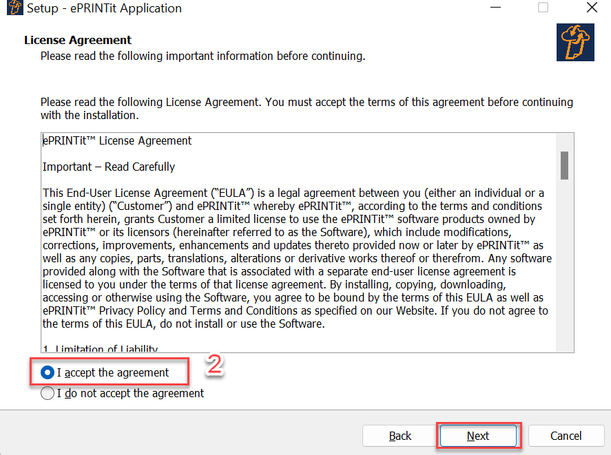 Read the License Agreement, click on I accept the agreement radio button and click o Next button