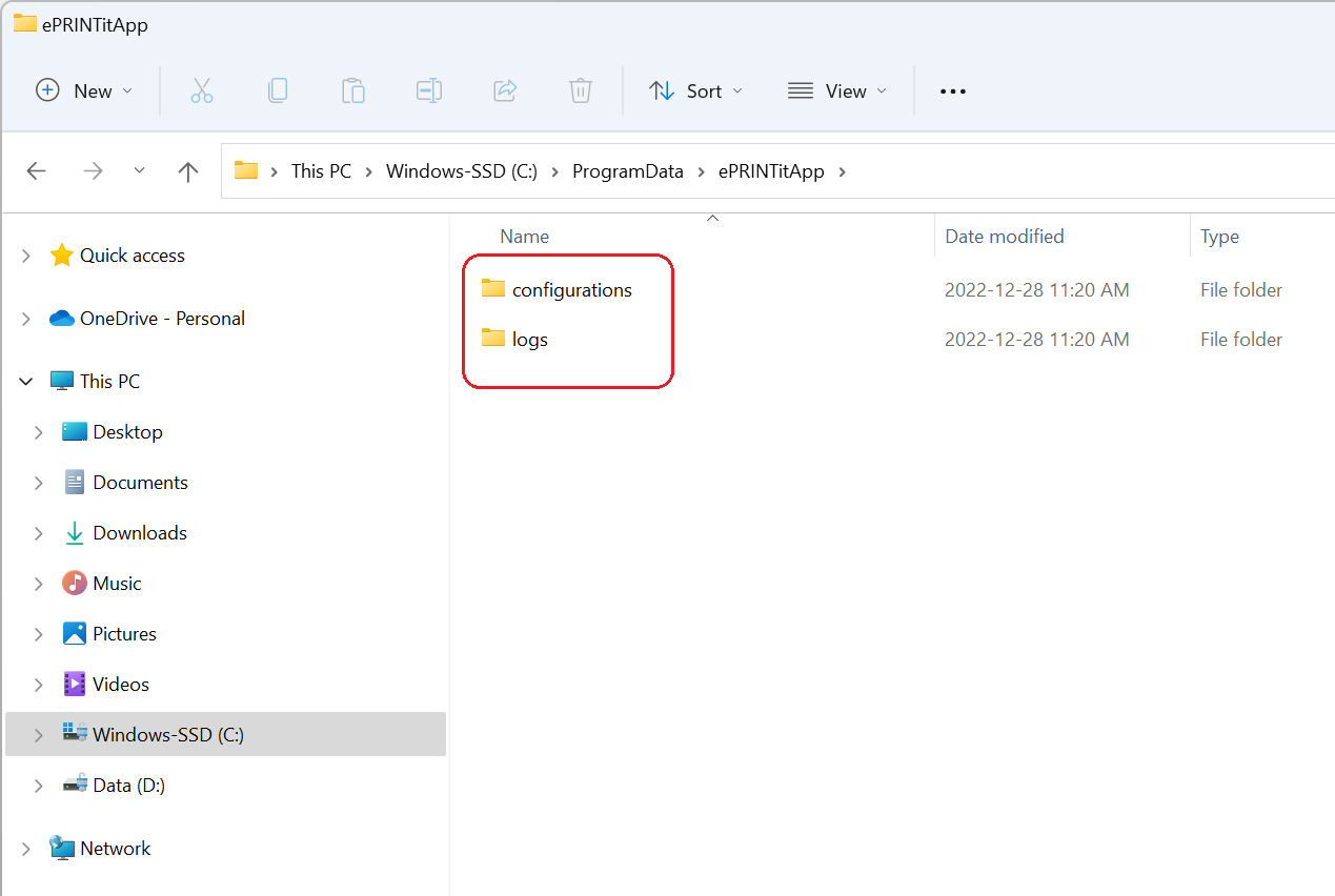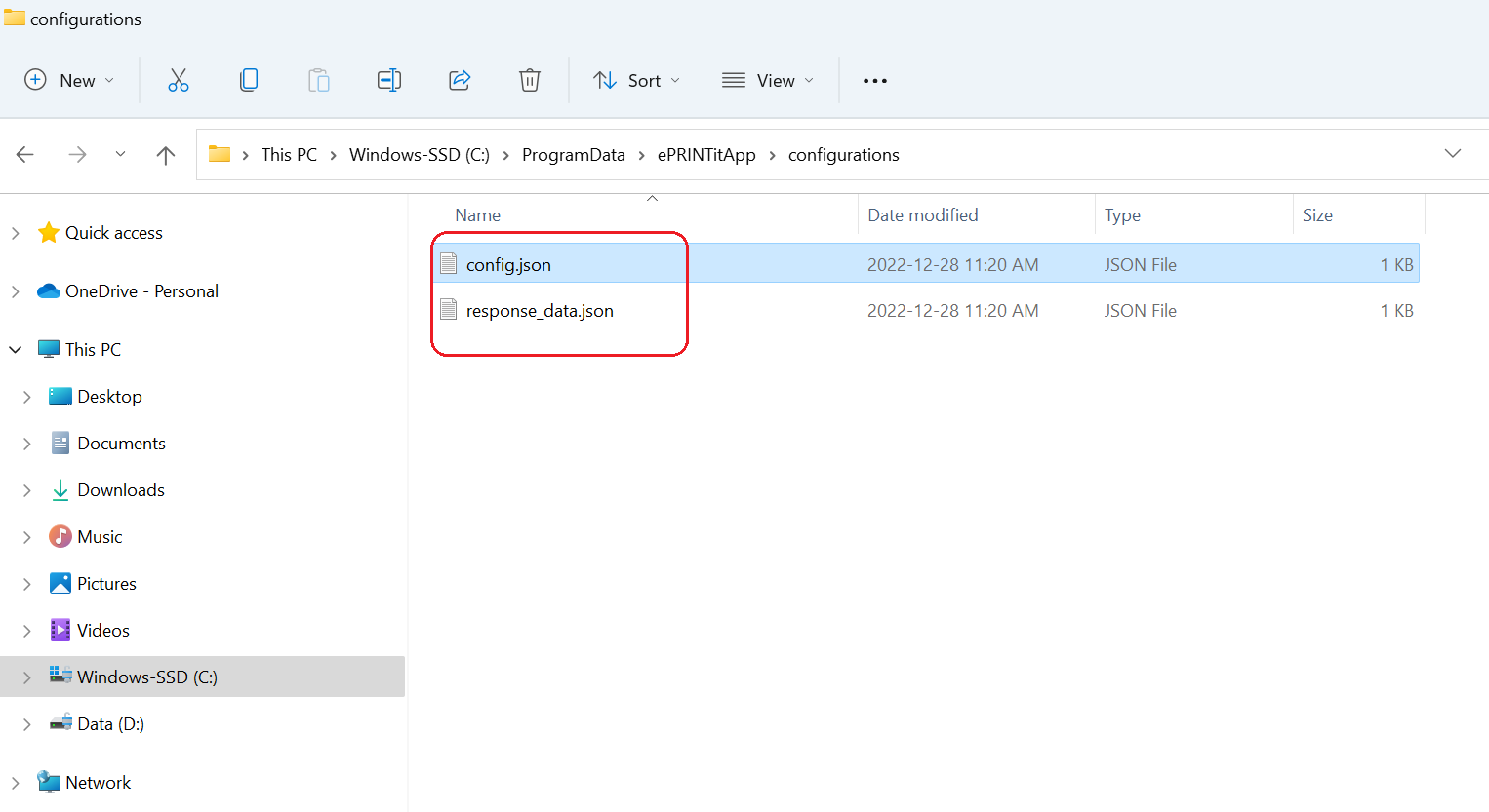 Once the activation code is informed, the following files are created under C:\ProgramData\ePRINTitApp\configurations :