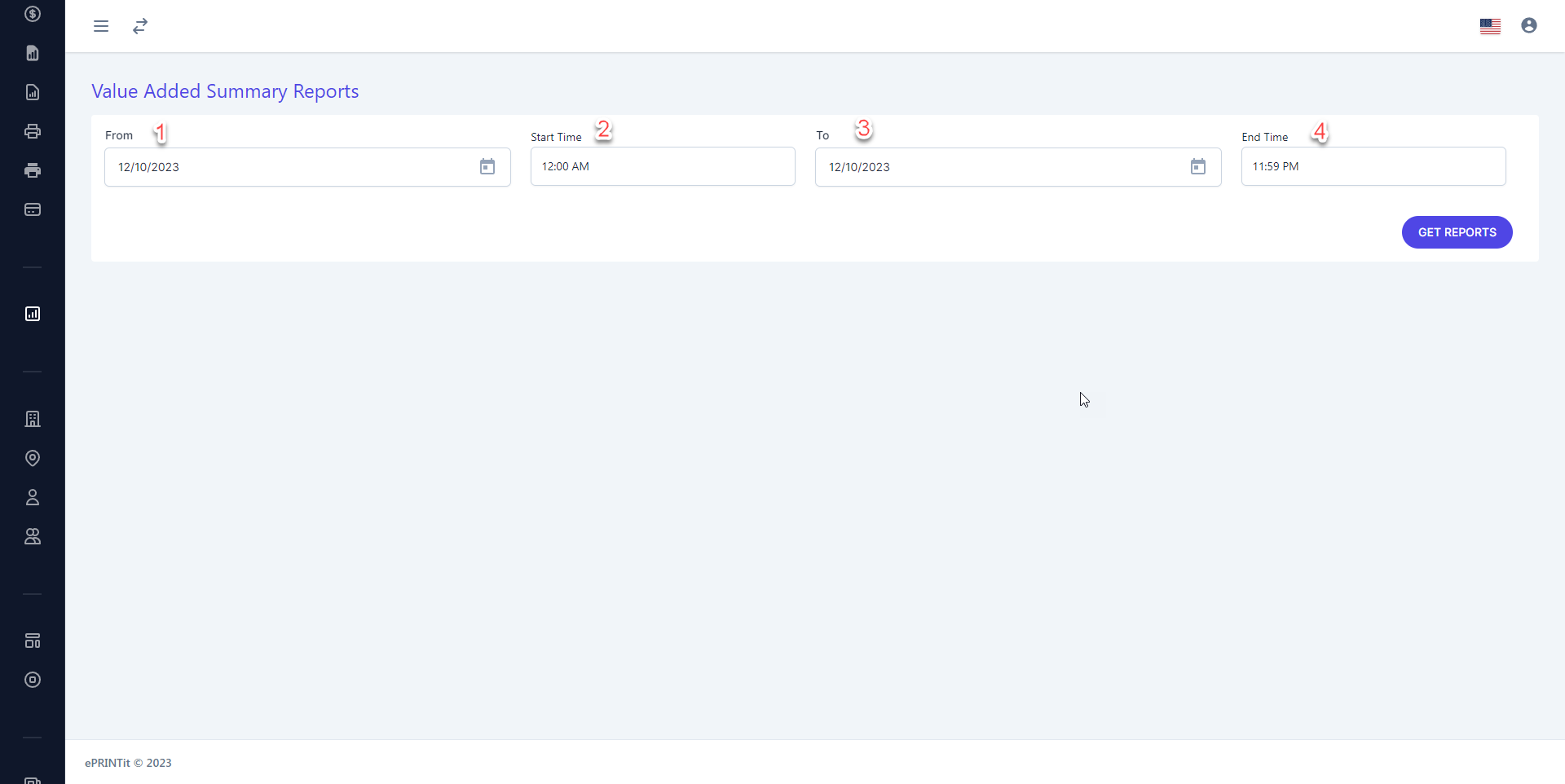 Users must log in to the system to access the Reports feature. Once logged in, users can navigate to the reports feature by clicking the Reports/Value Added Reports option in the main navigation menu.