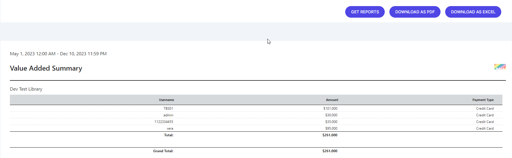 The Value Added Reports refers to the document or data generated containing the amount of money added by user in their accounts, using the option Add Value, under User Portal or using the Mobile application.