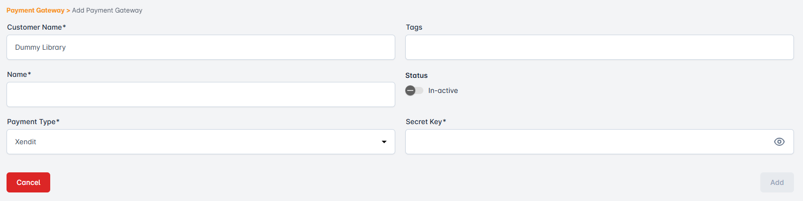 The Secret Key is generated by Xendit and provided to ePRINTit SaaS during the integration process.